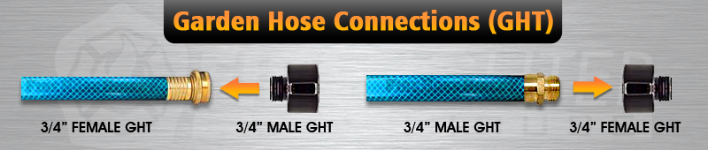 Garden Hose Threads (GHT), just like NST and NPSH, seals with a gasket in the female coupling. A typical garden hose may be 5/8" or 3/4" inside diameter but the fitting on the ends will be GHT. GHT is not compatible with NPT. For example, 3/4" GHT is not the same as 3/4" NPT.