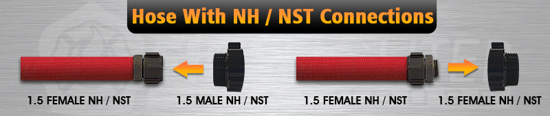 The female and male side of a fire hose coupling with NH threads will only connect to fittings, nozzles or hoses with the same threads. For example, a fire hose with NH threaded couplings will require a nozzle with NH threads.