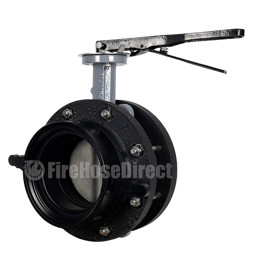 Lever controlled butterfly valve with 10 position handle and standard bleeder valve. Simply squeeze the handle and rotate to move the inner disc to one of 10 positive detents to control water flow. A one quarter turn moves the valve from fully closed to fully open.