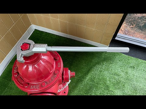 Heavy-duty adjustable fire hydrant wrench with an overall length of 18 inches. Spanner for pin lug and rocker lug couplings, 1 1/2" thru 6". Notched to fit 1 1/4" square hydrant nut for pentagon hydrant nuts up to 1 1/2" from point to flat plated iron head, 7/8" plated steel handle.