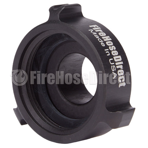 Aluminum adapters are fabricated from seamless extruded 6061-T6 aluminum and hard coat anodized per MIL-A-8625 Type III, Class 1. Threads have a blunt start Higbee cut with indicators on adjacent lugs. Part identifications are permanent and stamped prior to hardcoat. Adapters and components meet the requirements of NFPA 1963.