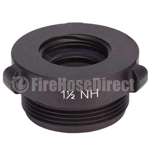 Aluminum adapters are fabricated from seamless extruded 6061-T6 aluminum and hard coat anodized per MIL-A-8625 Type III, Class 1. Threads have a blunt start Higbee cut with indicators on adjacent lugs. Part identifications are permanent and stamped prior to hardcoat. Adapters and components meet the requirements of NFPA 1963.