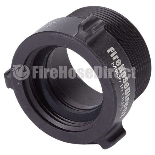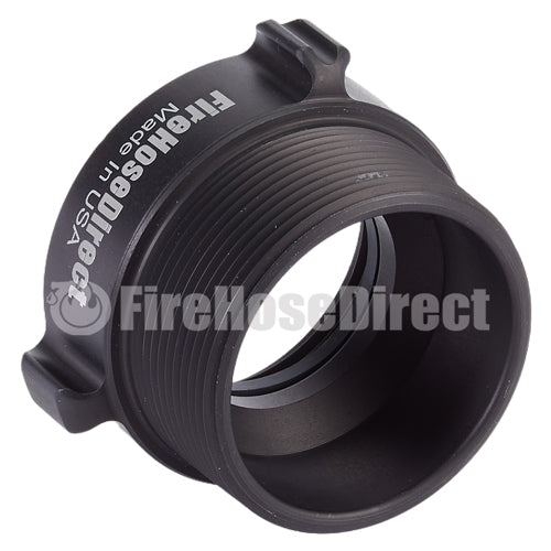 Aluminum adapters are fabricated from seamless extruded 6061-T6 aluminum and hard coat anodized per MIL-A-8625 Type III, Class 1. Threads have a blunt start Higbee cut with indicators on adjacent lugs. Part identifications are permanent and stamped prior to hardcoat. Adapters and components meet the requirements of NFPA 1963.