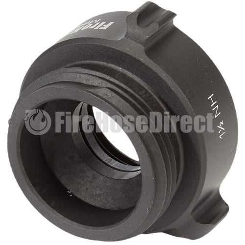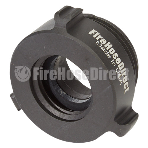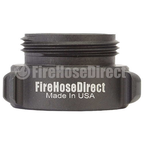 Aluminum adapters are fabricated from seamless extruded 6061-T6 aluminum and hard coat anodized per MIL-A-8625 Type III, Class 1. Threads have a blunt start Higbee cut with indicators on adjacent lugs. Part identifications are permanent and stamped prior to hardcoat. Adapters and components meet the requirements of NFPA 1963.