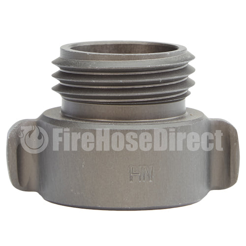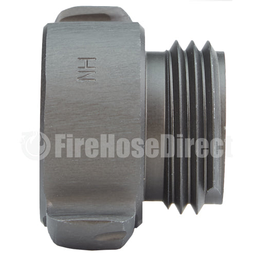 Aluminum adapters are fabricated from seamless extruded 6061-T6 aluminum and hard coat anodized per MIL-A-8625 Type III, Class 1. Threads have a blunt start Higbee cut with indicators on adjacent lugs. Part identifications are permanent and stamped prior to hardcoat. Adapters and components meet the requirements of NFPA 1963.