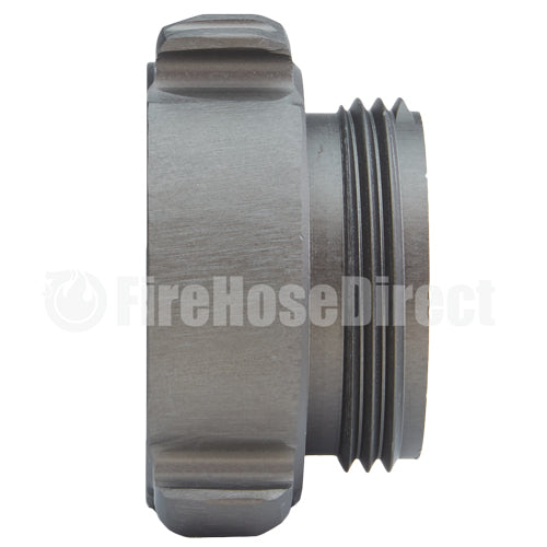 Aluminum adapters are fabricated from seamless extruded 6061-T6 aluminum and hard coat anodized per MIL-A-8625 Type III, Class 1. Threads have a blunt start Higbee cut with indicators on adjacent lugs. Part identifications are permanent and stamped prior to hardcoat. Adapters and components meet the requirements of NFPA 1963.