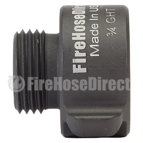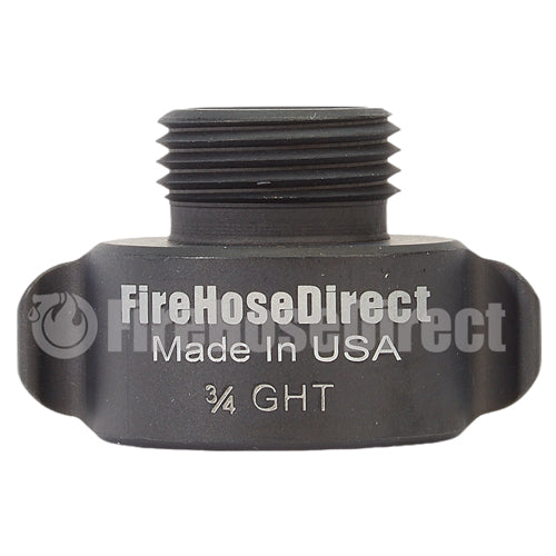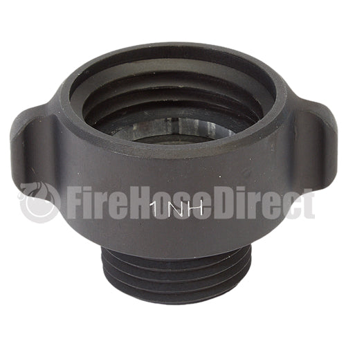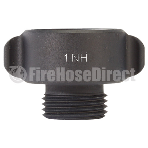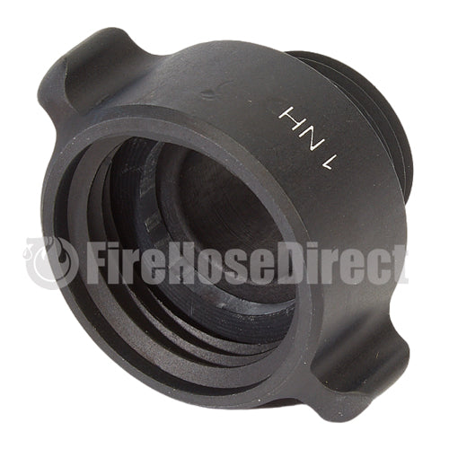 Aluminum adapters are fabricated from seamless extruded 6061-T6 aluminum and hard coat anodized per MIL-A-8625 Type III, Class 1. Threads have a blunt start Higbee cut with indicators on adjacent lugs. Part identifications are permanent and stamped prior to hardcoat. Adapters and components meet the requirements of NFPA 1963.