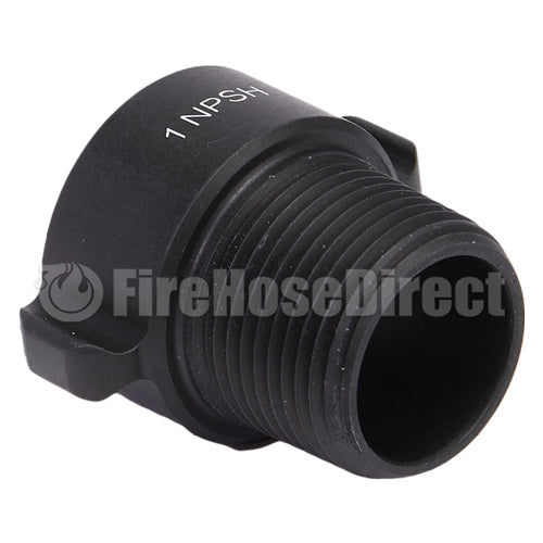Aluminum adapters are fabricated from seamless extruded 6061-T6 aluminum and hard coat anodized per MIL-A-8625 Type III, Class 1. Threads have a blunt start Higbee cut with indicators on adjacent lugs. Part identifications are permanent and stamped prior to hardcoat. Adapters and components meet the requirements of NFPA 1963.