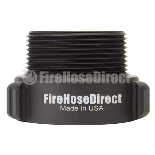 Aluminum adapters are fabricated from seamless extruded 6061-T6 aluminum and hard coat anodized per MIL-A-8625 Type III, Class 1. Threads have a blunt start Higbee cut with indicators on adjacent lugs. Part identifications are permanent and stamped prior to hardcoat. Adapters and components meet the requirements of NFPA 1963.