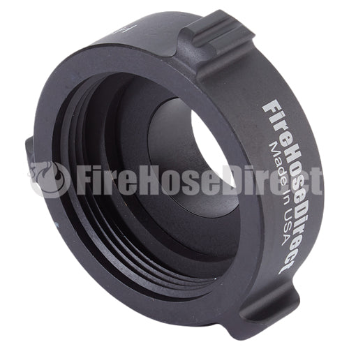 Aluminum adapters are fabricated from seamless extruded 6061-T6 aluminum and hard coat anodized per MIL-A-8625 Type III, Class 1. Threads have a blunt start Higbee cut with indicators on adjacent lugs. Part identifications are permanent and stamped prior to hardcoat. Adapters and components meet the requirements of NFPA 1963.