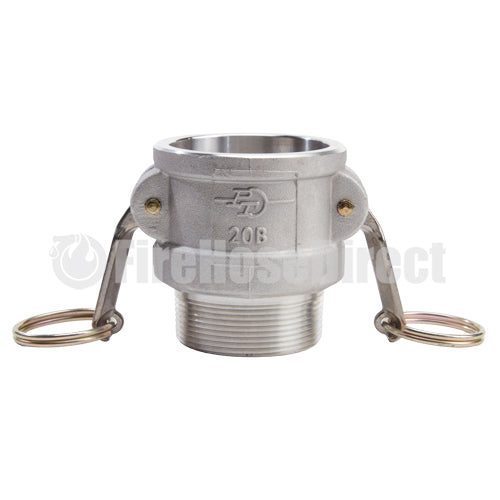 Global type "B" aluminum 2 inch female camlock (Cam & Groove) coupler to 2 inch male NPT threads. Under no circumstances should cam and groove couplings be used for compressed air or steam service!