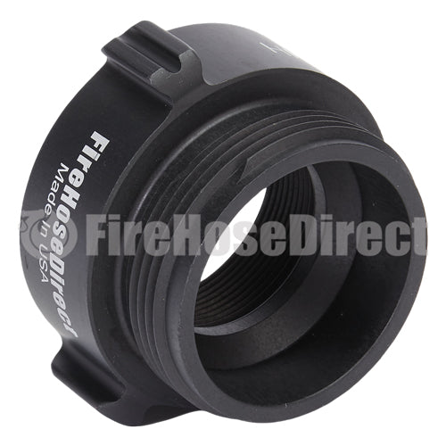 Aluminum adapters are fabricated from seamless extruded 6061-T6 aluminum and hard coat anodized per MIL-A-8625 Type III, Class 1. Threads have a blunt start Higbee cut with indicators on adjacent lugs. Part identifications are permanent and stamped prior to hardcoat. Adapters and components meet the requirements of NFPA 1963.The Safe Water Drinking Act section 1417 requires "Lead-Free" products to be a minimum of 99.75% lead-free.