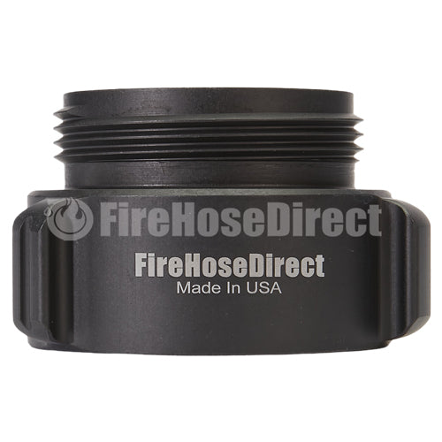 Aluminum adapters are fabricated from seamless extruded 6061-T6 aluminum and hard coat anodized per MIL-A-8625 Type III, Class 1. Threads have a blunt start Higbee cut with indicators on adjacent lugs. Part identifications are permanent and stamped prior to hardcoat. Adapters and components meet the requirements of NFPA 1963.