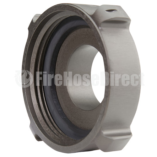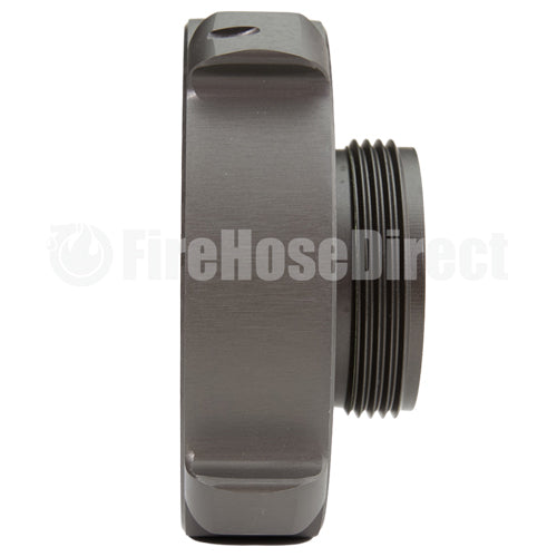 Aluminum adapters are fabricated from seamless extruded 6061-T6 aluminum and hard coat anodized per MIL-A-8625 Type III, Class 1. Threads have a blunt start Higbee cut with indicators on adjacent lugs. Part identifications are permanent and stamped prior to hardcoat. Adapters and components meet the requirements of NFPA 1963.