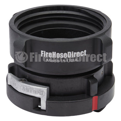 Storz Head component shall be forged from Alloy 6061 aluminum and heat treated to T6 temper. Adapters and components meet the requirements of NFPA 1963. Locking Storz are only available on 4, 5, and 6 inch. Locking springs prevent unintentional disconnects. Locks are stainless steel.