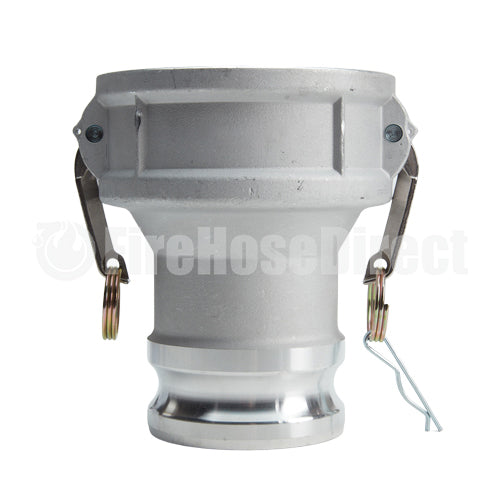 Global jump size aluminum 5 inch female camlock (Cam & Groove) coupler to 4 inch male camlock (Cam & Groove) coupler. Under no circumstances should cam and groove couplings be used for compressed air or steam service!