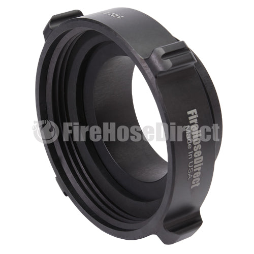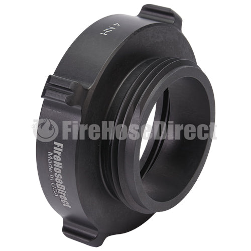 Aluminum adapters are fabricated from seamless extruded 6061-T6 aluminum and hard coat anodized per MIL-A-8625 Type III, Class 1. Threads have a blunt start Higbee cut with indicators on adjacent lugs. Part identifications are permanent and stamped prior to hardcoat. Adapters and components meet the requirements of NFPA 1963.