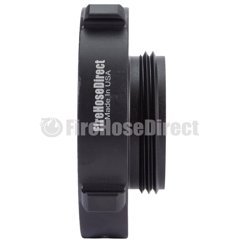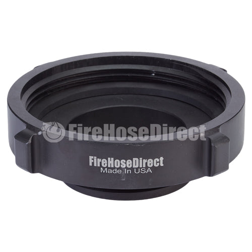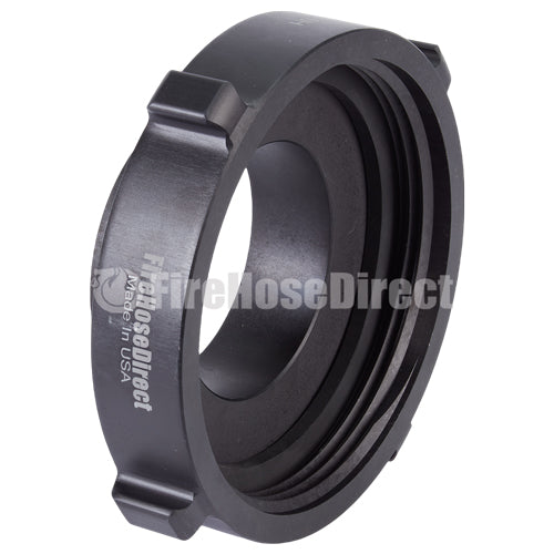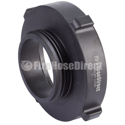 Aluminum adapters are fabricated from seamless extruded 6061-T6 aluminum and hard coat anodized per MIL-A-8625 Type III, Class 1. Threads have a blunt start Higbee cut with indicators on adjacent lugs. Part identifications are permanent and stamped prior to hardcoat. Adapters and components meet the requirements of NFPA 1963.