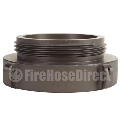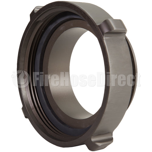 Aluminum adapters are fabricated from seamless extruded 6061-T6 aluminum and hard coat anodized per MIL-A-8625 Type III, Class 1. Threads have a blunt start Higbee cut with indicators on adjacent lugs. Part identifications are permanent and stamped prior to hardcoat. Adapters and components meet the requirements of NFPA 1963.