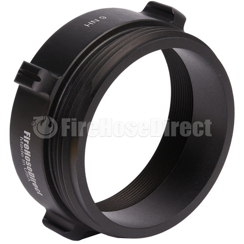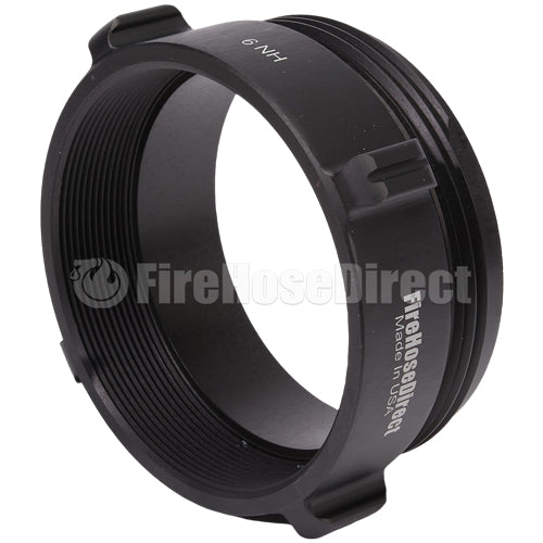 Aluminum adapters are fabricated from seamless extruded 6061-T6 aluminum and hard coat anodized per MIL-A-8625 Type III, Class 1. Threads have a blunt start Higbee cut with indicators on adjacent lugs. Part identifications are permanent and stamped prior to hardcoat. Adapters and components meet the requirements of NFPA 1963.