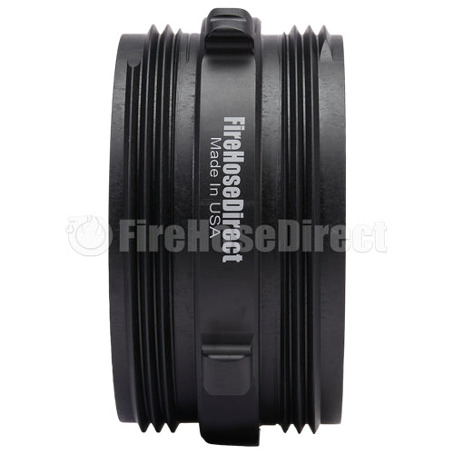 Aluminum adapters are fabricated from seamless extruded 6061-T6 aluminum and hard coat anodized per MIL-A-8625 Type III, Class 1. Threads have a blunt start Higbee cut with indicators on adjacent lugs. Part identifications are permanent and stamped prior to hardcoat. Adapters and components meet the requirements of NFPA 1963.