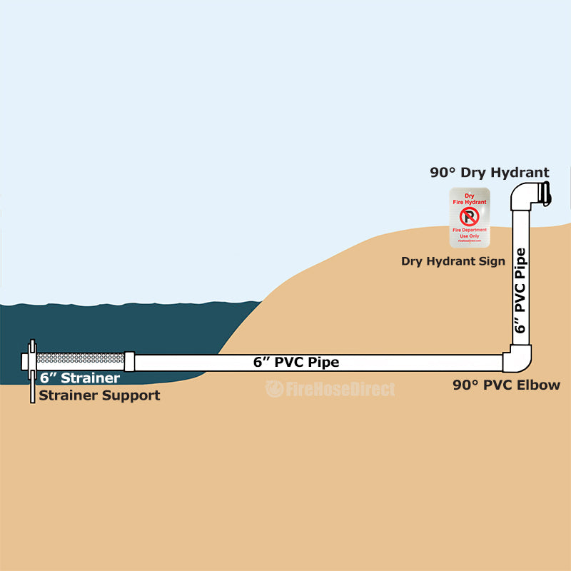 Dry hydrant underwater strainer support constructed of annozed aluminum tubing. Used to support 6" pvc strainers or pvc pipe for dry hydrant installations in ponds, lakes, etc.