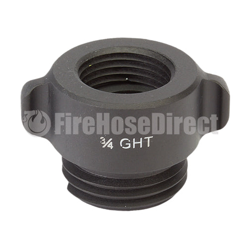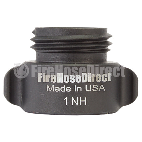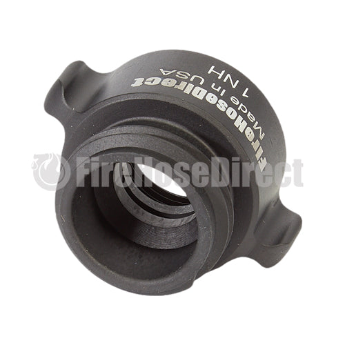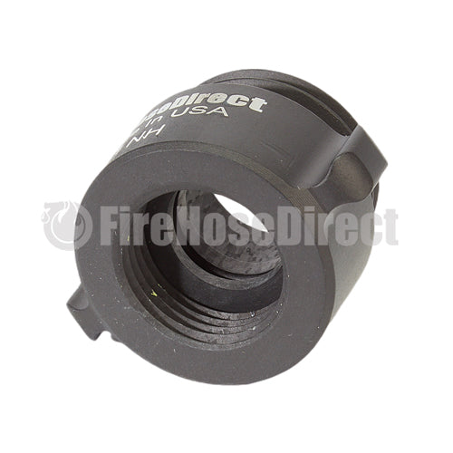 Aluminum adapters are fabricated from seamless extruded 6061-T6 aluminum and hard coat anodized per MIL-A-8625 Type III, Class 1. Threads have a blunt start Higbee cut with indicators on adjacent lugs. Part identifications are permanent and stamped prior to hardcoat. Adapters and components meet the requirements of NFPA 1963.
