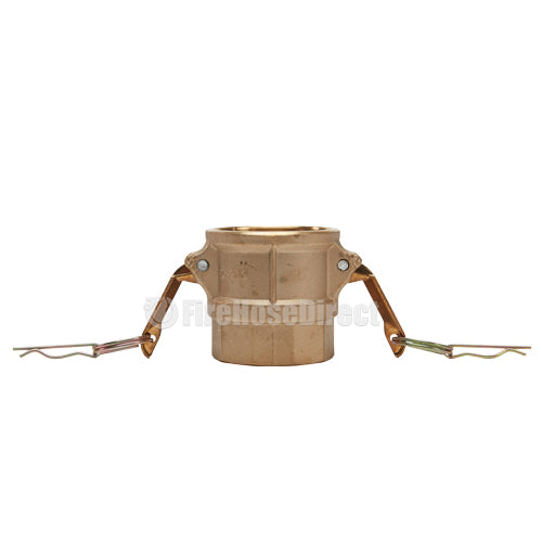 Global type "D" brass 2 inch female camlock (Cam & Groove) coupler to 2 inch female NPT threads. Under no circumstances should cam and groove couplings be used for compressed air or steam service!