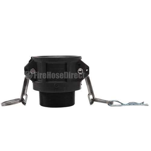 Type "B" polypropylene 2 inch female camlock (Cam & Groove) coupler to 2 inch male NPT threads. Under no circumstances should cam and groove couplings be used for compressed air or steam service!