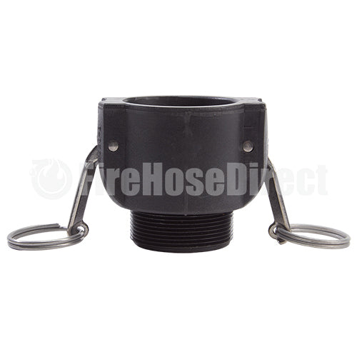 Type "B" polypropylene 2 inch female camlock (Cam & Groove) coupler to 2 inch male NPT threads. Under no circumstances should cam and groove couplings be used for compressed air or steam service!